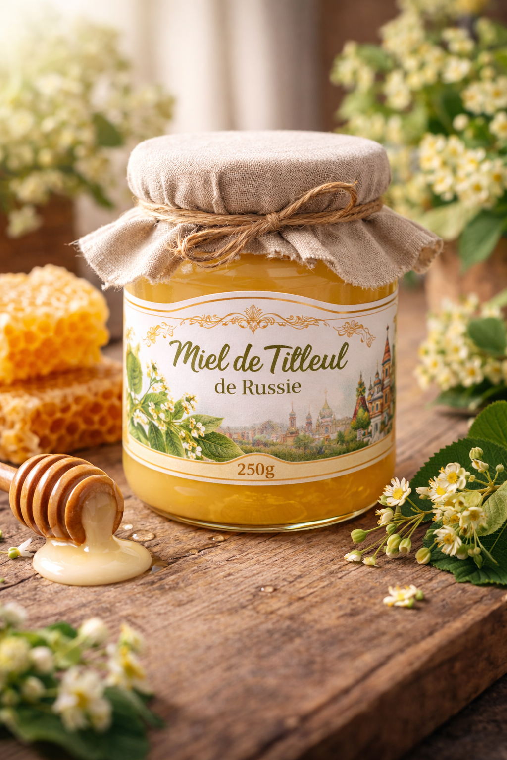 Le miel blanc au tilleul de Russie est un miel d’exception, apprécié pour sa couleur claire et nacrée, sa texture crémeuse et son goût délicat aux notes florales et légèrement mentholées, caractéristiques du tilleul.