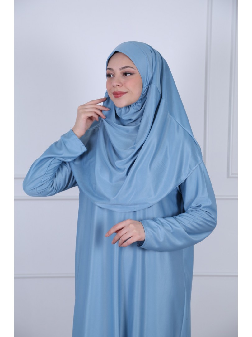 Découvrez notre robe de prière avec voile intégré. Elle mesure 145 cm de long et est disponible en trois couleurs.